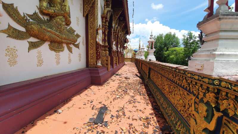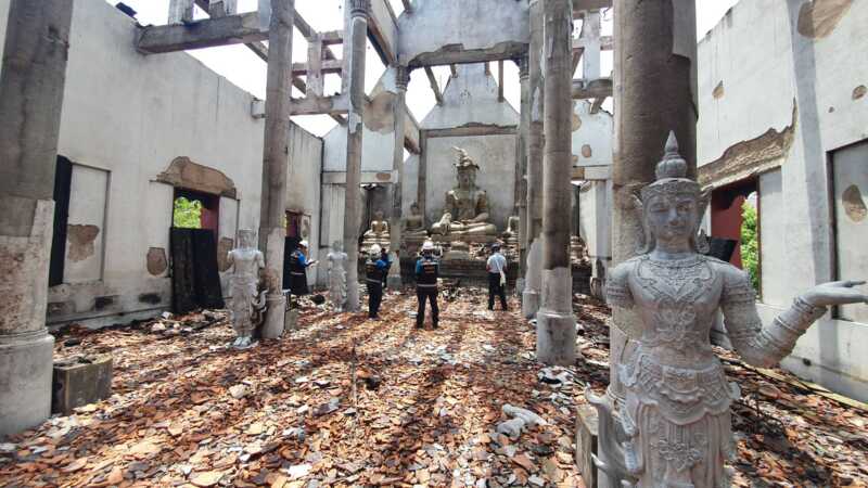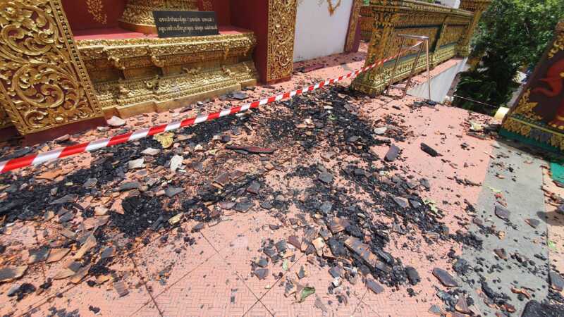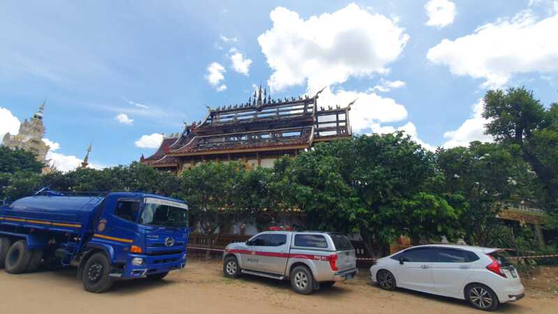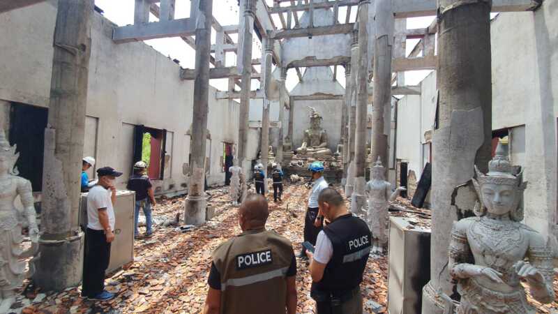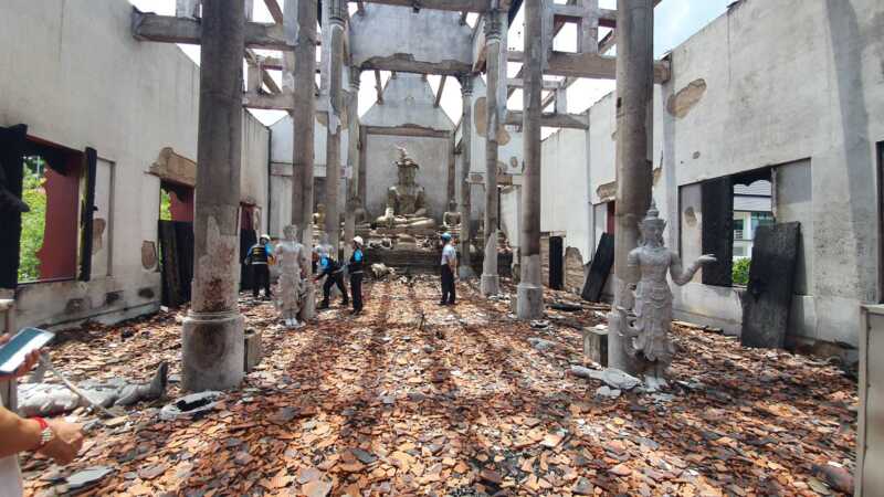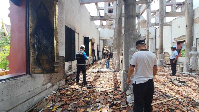 วันที่ 22 มิ.ย. 67 จากกรณีที่เกิดไฟไหม้วิหารหลวงลายคำ ภายในวัดแสงแก้วโพธิญาณ ม.11 ต.บ้านใหม่แสงแก้ว ต.เจดีย์หลวง อ.แม่สรวย จ.เชียงราย กลางดึกคืนที่ผ่านมา โดยในวันนี้นายพุฒิพงษ์ ศิริมาตย์ ผู้ว่าราชการจังหวัดเชียงราย เจ้าหน้าที่พิสูจน์หลักฐาน พนักงานสอบสวน สภ.แม่สรวย ผู้นำชุมชน และเจ้าหน้าที่เกี่ยวข้อง ได้เข้ามาตรวจสอบพื้นที่เกิดเหตุ เพื่อเก็บหลักฐานเพื่อตรวจพิสูจน์สาเหตุของเพลิงไหม้ โดยในพื้นที่วิหารมีเศษกระเบื้องหลังคาร่วงมากองเต็มไฟไปหมด ไฟไหม้พระพุทธรูปสำคัญ หุ่นขี้ผึ้งภาพจิตรกรรม โดนเผาวอดทั้งหมด เซิร์ฟเวอร์ บันทึกภาพกล้องวงจรปิดภายในวิหารที่อยู่บริเวณด้านหลังพระประธาน ทำให้ถูกไฟไหม้เสียหายทั้งหมด ลงพื้นที่ตรวจสอบหาสาเหตุ โดยประเมินเบื้องต้นความเสียหายไม่ต่ำกว่า 100 ล้านบาท โดยที่วิหารหลวงลายคำ วัดแสงแก้วโพธิญาณ ได้มีการนำเอาเชือกกั้นแนวมากั้นพื้นที่ ไม่ให้ผู้ไม่เกี่ยวข้องเข้าไปในวิหาร โดยมีชาวบ้านที่ทราบข่าวมารอดูการทำงานของเจ้าหน้าที่