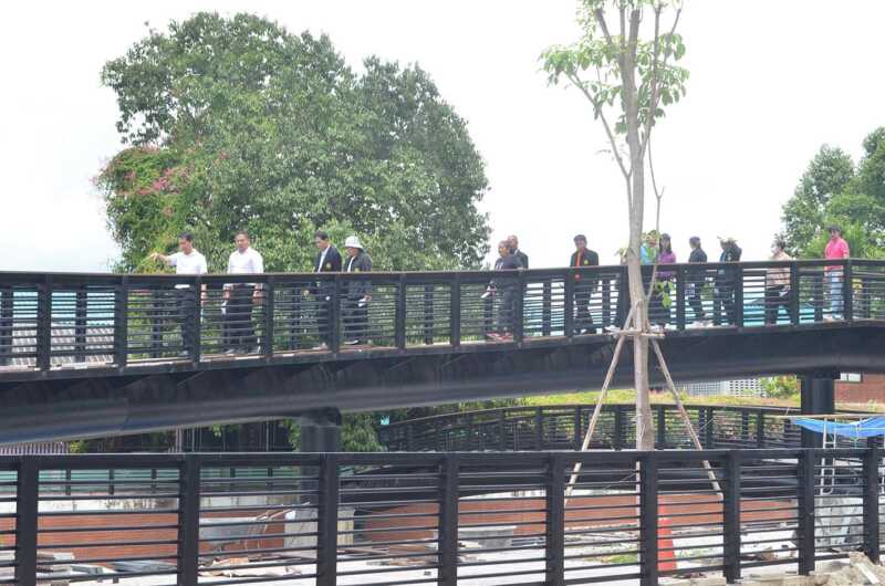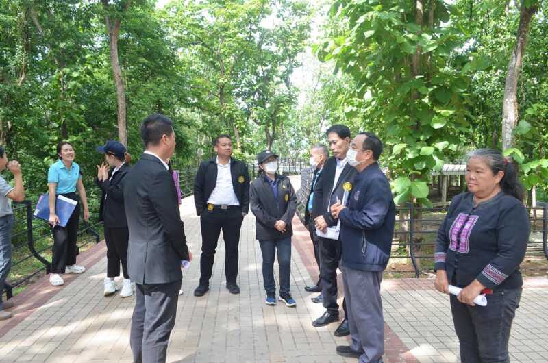 จากนั้น คณะกรรมการธรรมาภิบาล จ.พะเยา ได้ไปติดตามความคืบหน้าโครงการบูรณาการการท่องเที่ยวกลุ่มจังหวัด เพื่อพัฒนาแหล่งท่องเที่ยวเชื่อมโยงเชียงราย-พะเยา 5 เชียงน้อย กิจกรรมย่อยพัฒนาแหล่งท่องเที่ยวเชิงนิเวช เชิงวัฒนธรรมและเชิงกีฬาริมน้ำลาว บ้านมาง หมู่ 4 ต.หย่วน อ.เชียงคำ จ.พะเยา โดยมีนายธีรวัชร์ เกี๋ยงคำ วิศวกรโยธาชำนาญการพิเศษ สำนักงานโยธาธิการและผังเมือง จ.พะเยา พร้อมด้วยตัวแทนเทศบาลตำบลเชียงคำ ให้การต้อนรับเปิดเผยความคืบหน้าโครงการกว่า 80% คาดแล้วเสร็จก่อนสิ้นเดือน กรกฎาคม 2567 พร้อมพาคณะเดินชมงานก่อสร้างสะพานทางเดิน ในการนี้ กธจ.พะเยา ได้รับการร้องเรียนจากผู้ใช้รถ ว่ารั้วสะพานทางเดินบริเวณสามแยกสะพานข้ามแม่น้ำลาว บดบังทัศนวิสัยการมองเห็นของผู้ขับยวดยานต่างๆ โดยนายสุพัฒน์ สุวรรณศักดิ์ ผอ.กองช่างเทศบาลตำบลเชียงคำ ตัวแทนนายก ทต.เชียงคำ ชี้แจงว่า จะนำเสนอปัญหาให้แก่นายกเทศมนตรีฯ ได้รับทราบเพื่อดำเนินการแก้ไขปัญหาดังกล่าว ซึ่งตนคาดว่าจะทำสัญญาณไฟจราจร หรืออาจทำกระจกโค้ง เพื่ออำนวยความสะดวกการมองเห็น ซึ่งจะสามารถบรรเทาปัญหาได้