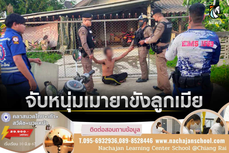 พะเยา ชาวบ้านระอา!!แจ้ง ตร.จับหนุ่มเมายาขังลูกเมียไว้ในบ้านถือมีดเกว่งไปมาหน้าบ้าน