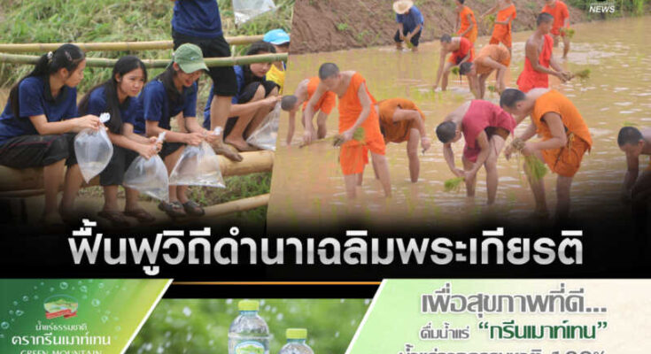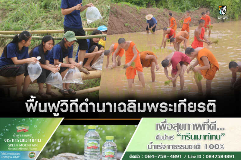 วัดภูสมณารามและพสกนิกรทุกหมู่เหล่า ร่วมกิจกรรมฟื้นประเพณีลงแรงปักดำนา ปล่อยพันธุ์ปลา เนื่องในวันเฉลิมพระชนมพรรษา 6 รอบ ในพื้นที่โคกหนองนาโมเดลของวัด