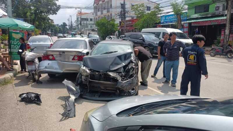 ด่วน‼️ รับแจ้งมีอุบัติรถเก๋งชนดะ ผู้ก่อเหตุมึนเมาสุราและพยายามขับรถหลบหนี เบื้องต้นรถเสียหายจำนวน 5 คัน บริเวณแถวตลาดสนามบิน ต.พระบาท จ.ลำปาง (มีคลิป)