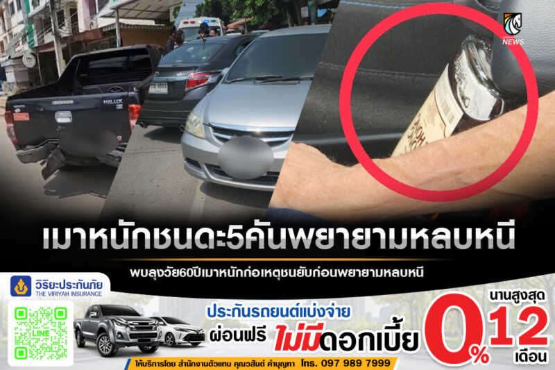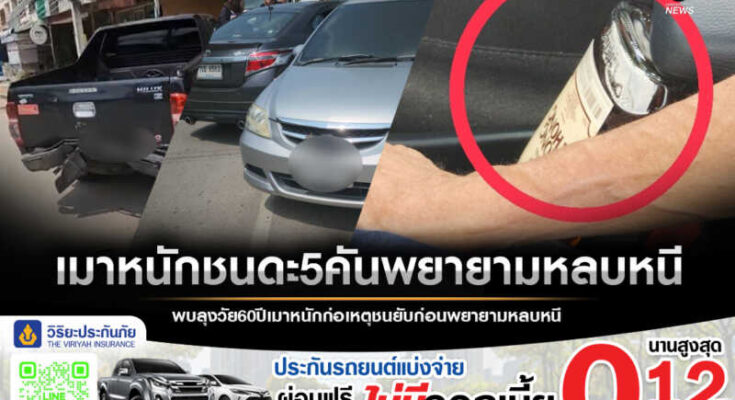 จุดเกิดเหตุพบชายอายุประมาณ 60 ปี บอกนักข่าวว่าชื่อลุงน้อย สภาพเมาแอ๋นั่งอยู่บริเวณเบาะฝั่งผู้โดยสารของรถยนต์ยนต์เก๋ง ให้การไม่รู้เรื่อง แต่พอจับใจความว่ากำลังจะขับรถกลับบ้านในเขตพื้นที่ตำบลพระบาท อ.เมืองลำปาง โดยเจ้าหน้าที่พบบริเวณคอนโซลหน้ารถ พบสุราไทยยี่ห้อดัง เหลือประมาณครึ่งขวดตกอยู่ในรถ จากนั้นเจ้าหน้าที่ตำรวจจึงเก็บไว้เป็นหลักฐาน และเจ้าหน้าที่ยังพบผู้เสียหายจำนวนมาก โดยรถยนต์และรถกระบะอีก 5 คัน ที่จอดเรียงรายอยู่เลยริมถนน เสียหายถูกชนท้ายรถ ถูกชนข้างรถพัง ซึ่งหลังเกิดเหตุแล้วทางเจ้าหน้าที่ตำรวจก็ได้ควบคุมตัวชายคนดังกล่าวไปสอบปากคำและไปตรวจวัดปริมาณแอลกอฮอล์ที่โรงพัก สภ.เขลางค์นคร เพื่อดำเนินคดีตามกฎหมายต่อไป.