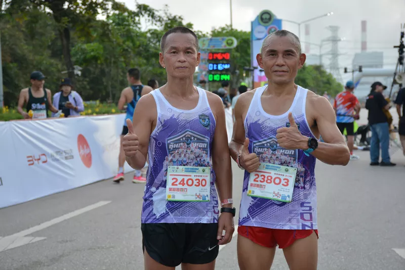 นายวิสุทธิ์ อุปพันธ์พงศ์กุล (โค้ชนงค์) ผู้ฝึกสอนนักกีฬาการแข่งขันตะกร้อลอดห่วง มาวิ่งกับ นายสมชาย วงค์คีรีสกุล จาก จ.แม่ฮ่องสอน กล่าวว่า มาวิ่งแข่งในระยะฮาล์ฟมาราธอน 21.1 กิโลเมตร ประเภทอายุ 50-54 ปี เป็นปีที่ 2 และทำสถิติตัวเองไว้ที่ 1:37:39 ชั่วโมง สนามแข่งมีเนินน้อยแต่วิ่งสนุก รูปแบบงานจัดได้ดียอดเยี่ยมแบบมืออาชีพมาก เหมาะสมยิ่งที่ได้รับเป็นสนามมาตรฐานระดับโลก ปีหน้าอยากเชิญชวนทุกกลุ่มอายุมีใจรักและมาวิ่งกันให้มากขึ้นๆ อีก เพราะการวิ่งเป็นการออกกำลังกายที่ทำได้ง่ายและส่งผลดีต่อระบบต่างๆ ของร่างกายที่แข็งแรงและมีสุขภาพดี เช่น ระบบหายใจ ความแข็งแรงของกล้ามเนื้อ