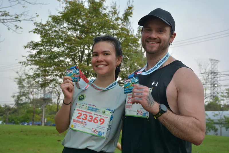 นาย Ryan Echlin จากประเทศแคนาดา กล่าวว่า ตนกับแฟนสาว (น.ส. Elisa Gilliot ลูกครึ่งไทย-ฝรั่งเศส) เดินทางจาก จ.เชียงใหม่ มาวิ่งแข่งประเภทฮาล์ฟมาราธอน 21.1 กิโลเมตร เป็นครั้งแรกและซ้อมวิ่ง 6 เดือนเพื่องานนี้ พวกเรารู้สึกสนุก มีความสุข ชอบและประทับใจมากๆ ที่ได้เปิดประสบการณ์เส้นทางวิ่งใหม่ๆ ที่กว้างและบรรยากาศสวยงาม ได้ชมความสวยงามของโรงไฟฟ้าแม่เมาะ เหมืองแม่เมาะอย่างใกล้ชิด อากาศดีและสดชื่นมาก มาตรฐานการจัดงานดีมาก ป้ายต่างๆ มองเห็นชัดเจน มีเจ้าหน้าที่คอยอำนวยความสะดวกตลอดเส้นทาง ปีหน้ามาวิ่งอีกแน่นอน