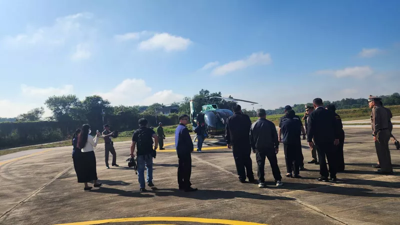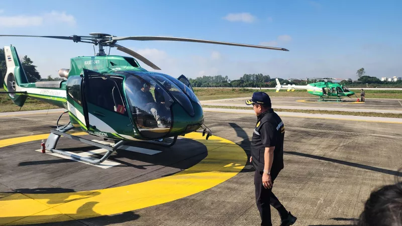 ร้อยเอกธรรมนัส พรหมเผ่า รองนายกรัฐมนตรี และรัฐมนตรีว่าการกระทรวงเกษตรและสหกรณ์ เดินทางถึงท่าอากาศยานลำปางด้วยเครื่องบินเช่าเหมาลำ ในช่วงเวลาประมาณ 09.00 น. โดยมีหัวหน้าส่วนราชการในจังหวัดลำปางให้การต้อนรับอย่างอบอุ่น ก่อนเดินทางต่อด้วยเฮลิคอปเตอร์ลงพื้นที่อำเภอเถินทันที