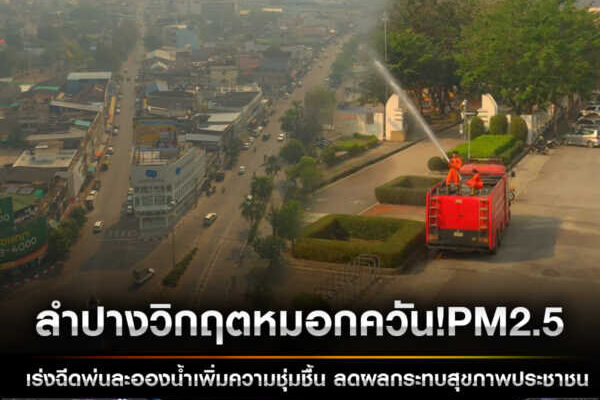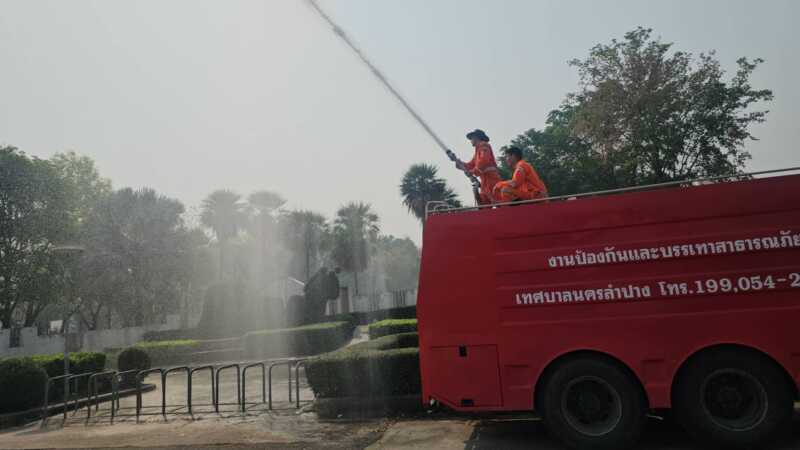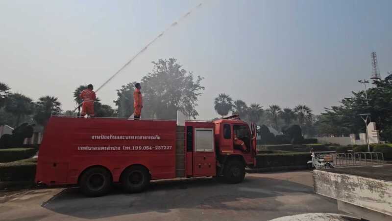 ลำปางวิกฤตหมอกควัน! PM2.5 พุ่ง 61 มคก./ลบ.ม. เกินค่ามาตรฐาน – เร่งฉีดพ่นละอองน้ำเพิ่มความชุ่มชื้น ลดผลกระทบสุขภาพประชาชน
