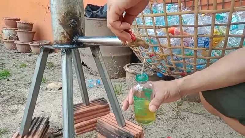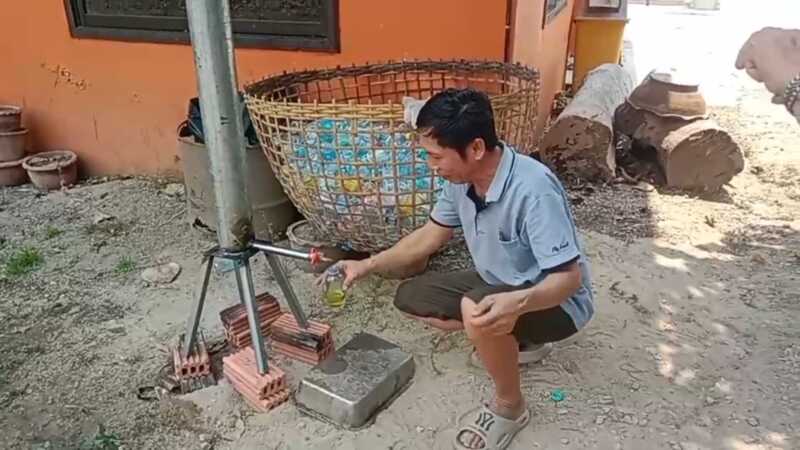 พระครูวิธานสารุกิจ เปิดเผยว่า แนวคิดดังกล่าวได้ศึกษามาจากสื่อออนไลน์ ก่อนนำมาปรับใช้จริง โดยใช้ถังแก๊สขนาด 48 กิโลกรัมที่หมดสภาพและไม่มีแก๊สแล้ว มาดัดแปลงเป็นเตากลั่น เชื่อมต่อท่อเหล็กจากด้านบนของถังให้เชื่อมโยงผ่านระบบหล่อเย็นด้วยน้ำ เมื่อเริ่มกระบวนการจะนำขยะพลาสติก เช่น ถุงพลาสติกและขวดน้ำพลาสติก อัดใส่ภายในถัง จากนั้นจุดไฟให้ความร้อนใช้เวลาประมาณ 2 ชั่วโมง
